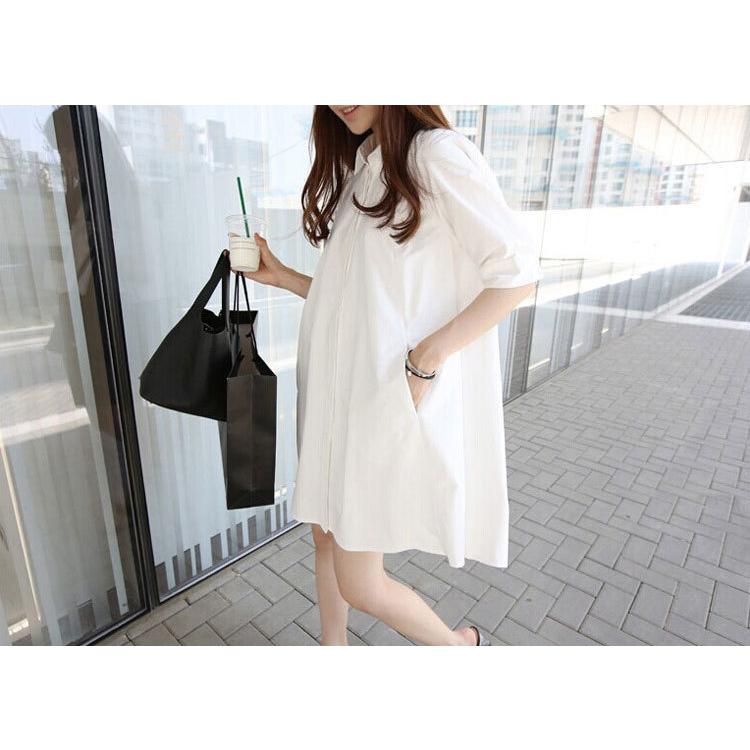 シャツワンピース レディース 40代 キレイめ 膝丈ワンピース 春夏 五分袖ワンピース 白シャツ チュニック 背中プリーツ 韓国風 ゆったり オシャレ 可愛い Y42 Fairyhouse 通販 Yahoo ショッピング